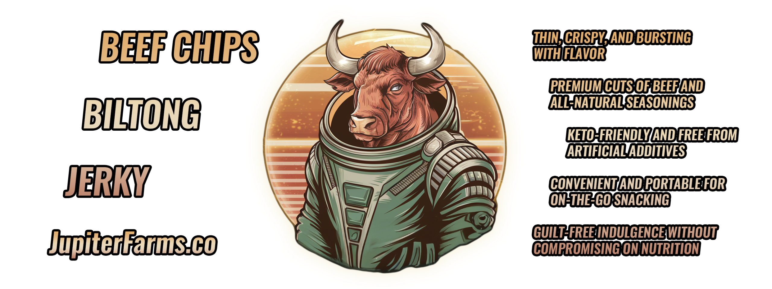Want to be one of the first to try our incredible beef chips? Sign up for our pre-sale list today! As we like to say, "We come in pieces," and we can't wait to share them with you.Get ready to blast off with Jupiter Farms beef chips – it's an out-of-this-world snacking experience you won't want to miss!